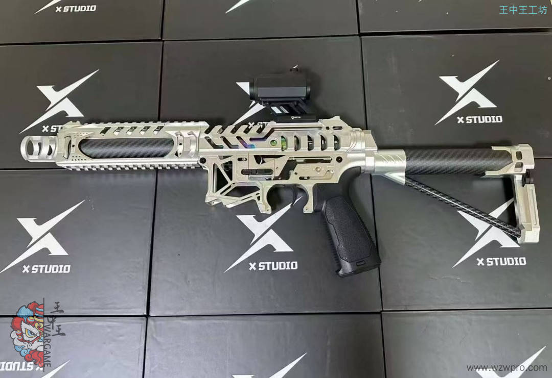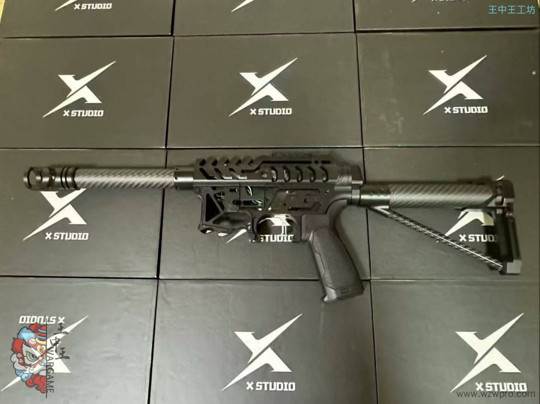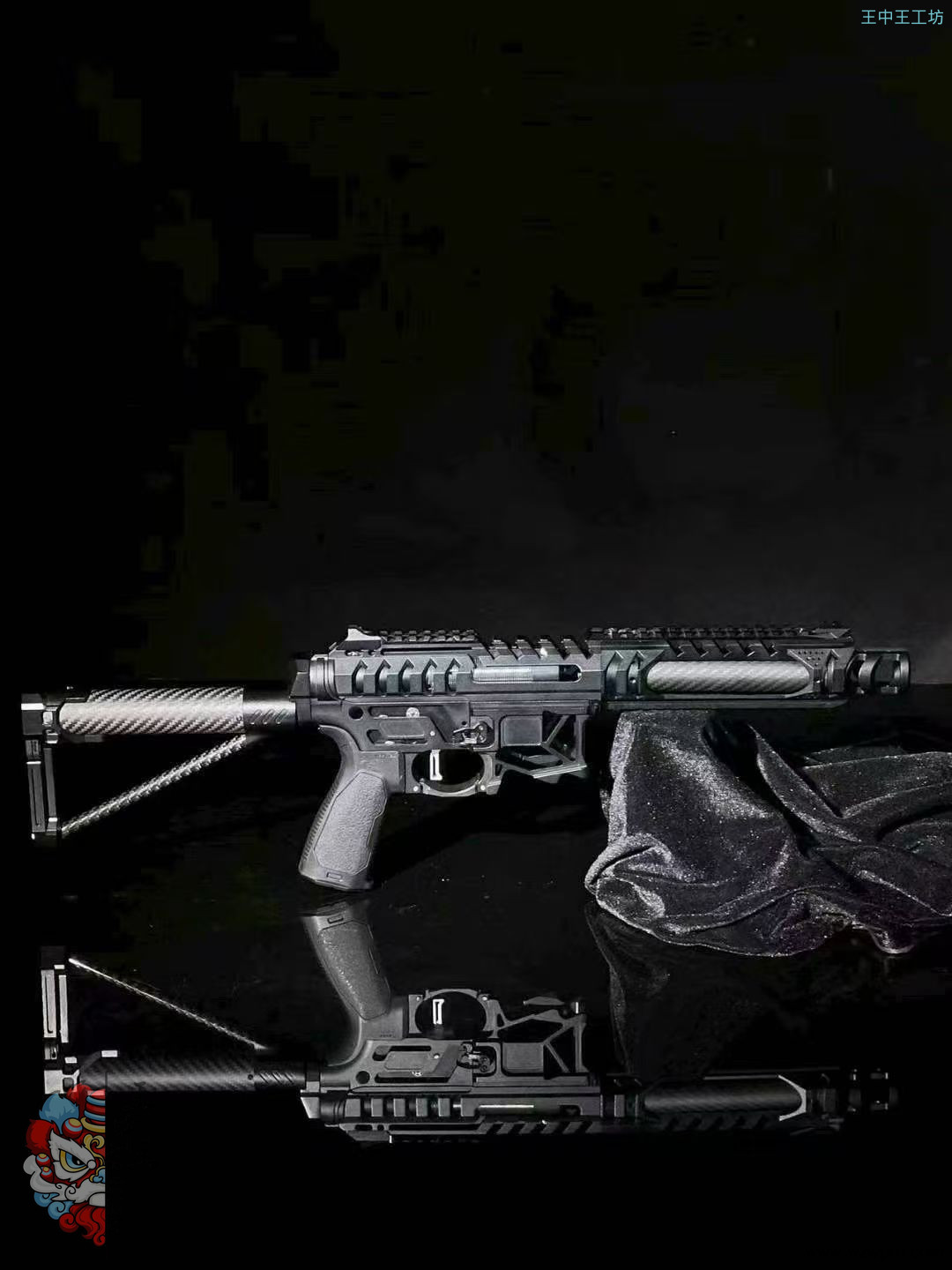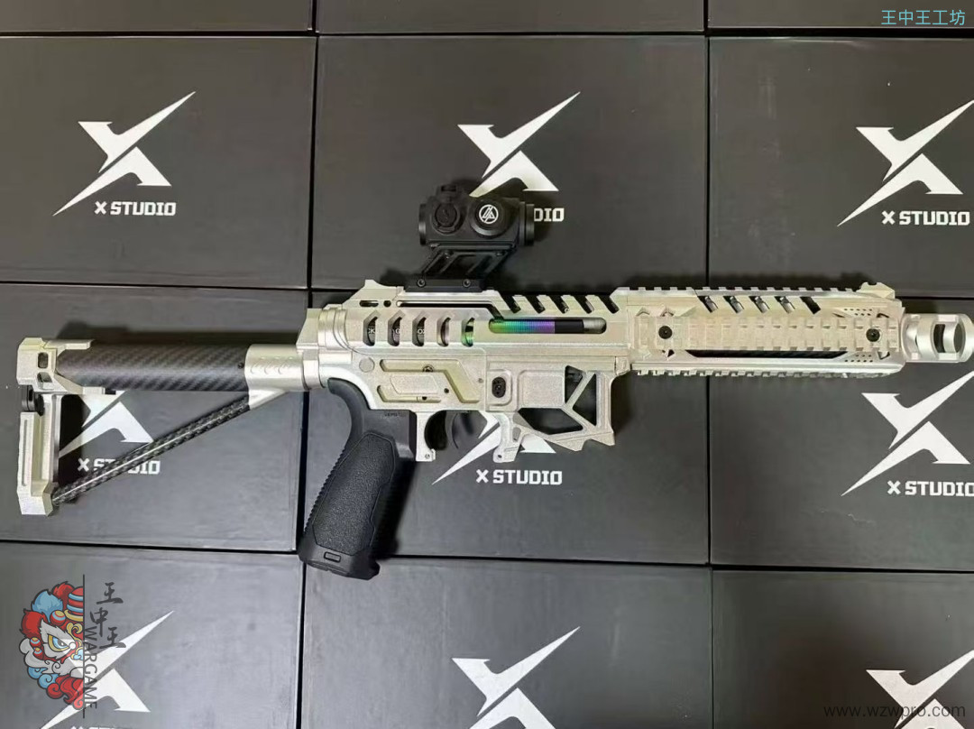 • 套件配件:配备火冒、鱼骨、碳纤维外管、定制四面导轨(定制前机瞄导轨+定制左右下导轨)、后机瞄、上下机匣、陀螺、专属销钉、快慢机、弹匣卡榫、si 握把、护弓、后托、推牌电池后盖等众多配件。