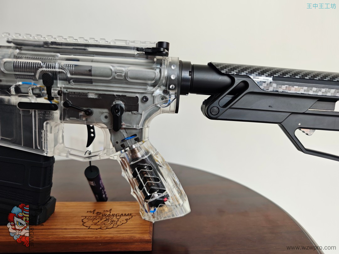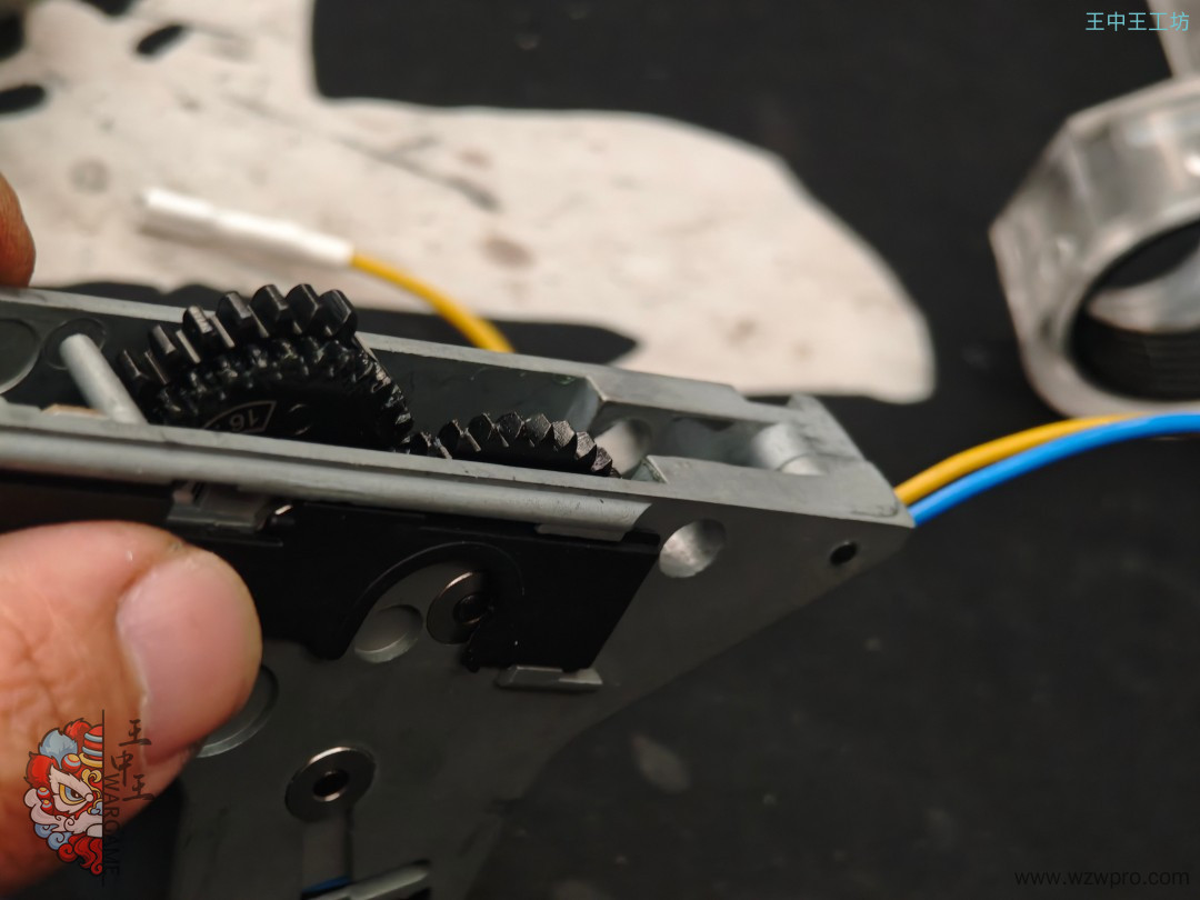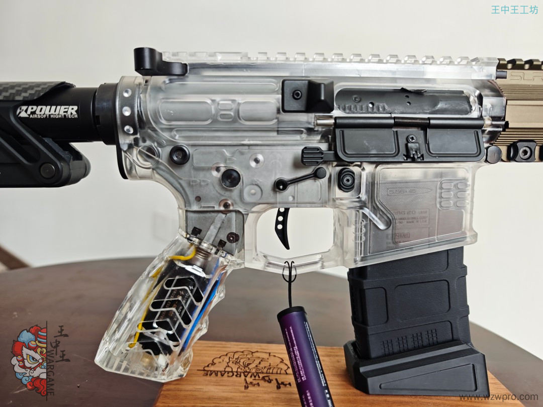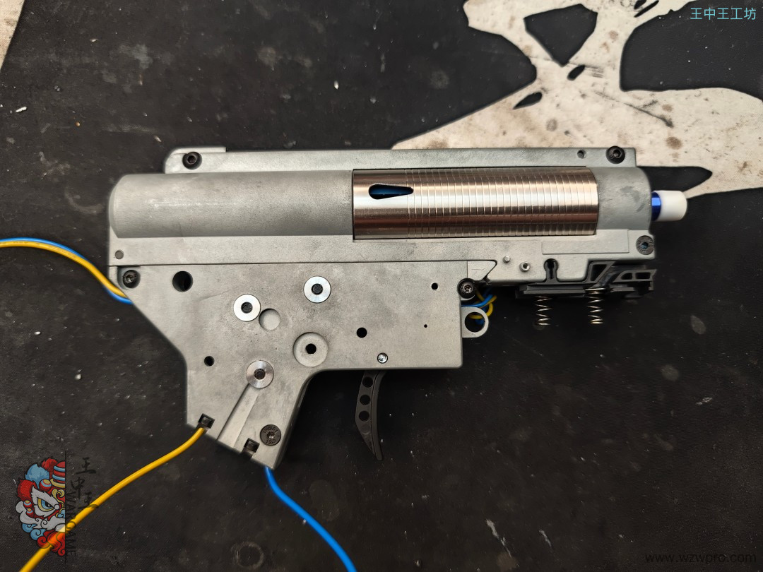 内部配置都是全新,齿轮精调,弹道一流。内部直接塞入卤蛋堂1.0锌合金波箱,电机为速凌四代48000转可调速,最主要的是,除了双边快慢机,其他完美还原,比如双边空挂释放