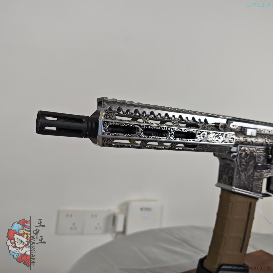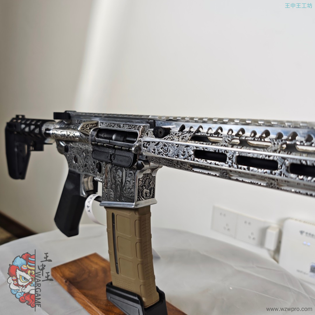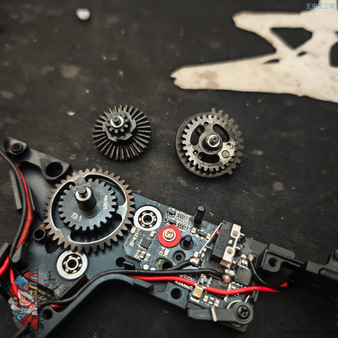 非常适合收藏的套件,机匣鱼骨后托都是激光雕刻而成,全部为铝合金材质,内构7075波加速五,属于非常高的配置,齿轮内部全部检修,大哥喜欢造型可以直接冲。之前的SVT火控坏了,所以直接更换全新的无名磁控。