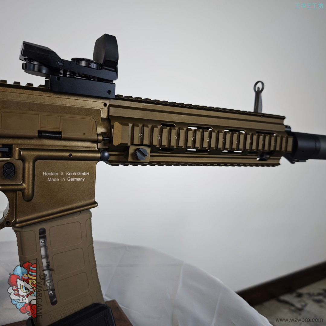 价格比较不错,内部全部重新调整,配置也很高,A5套件比较重,所以建议锻炼身体的大哥,或者本身体质比较好的大哥,带一个小红点,一个长消音,挂墙时带上消音(快拆消音),下场时只用火帽,非常合适。