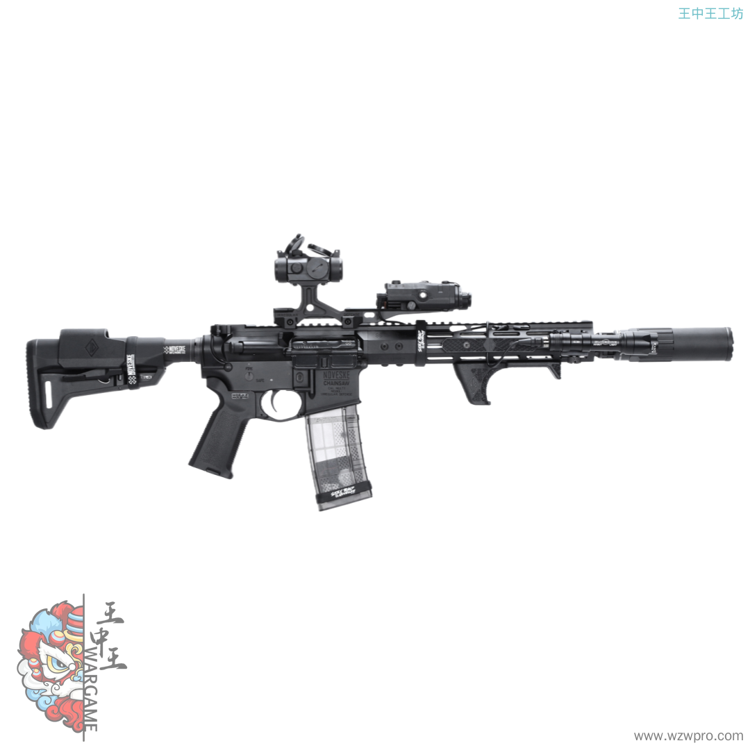 消音器:6系铝合金+cnc工艺 外管:6系铝合金+cnc工艺一体成型 导气坐: 6系铝合金+cnc工艺 导气杆:钢制+折弯工艺 鱼骨: 6系铝合金+cnc工艺 机匣:铝合金压铸成胚+cnc工艺 机匣小件:全钢制+QPQ处理 拉机柄: 6系铝合金+cnc工艺 托芯: 6系铝合金cnc工艺 后托:尼龙材质+注塑工艺 握把:尼龙材质+注塑工艺所有配置都包含以下赠品: L5黑透弹匣
