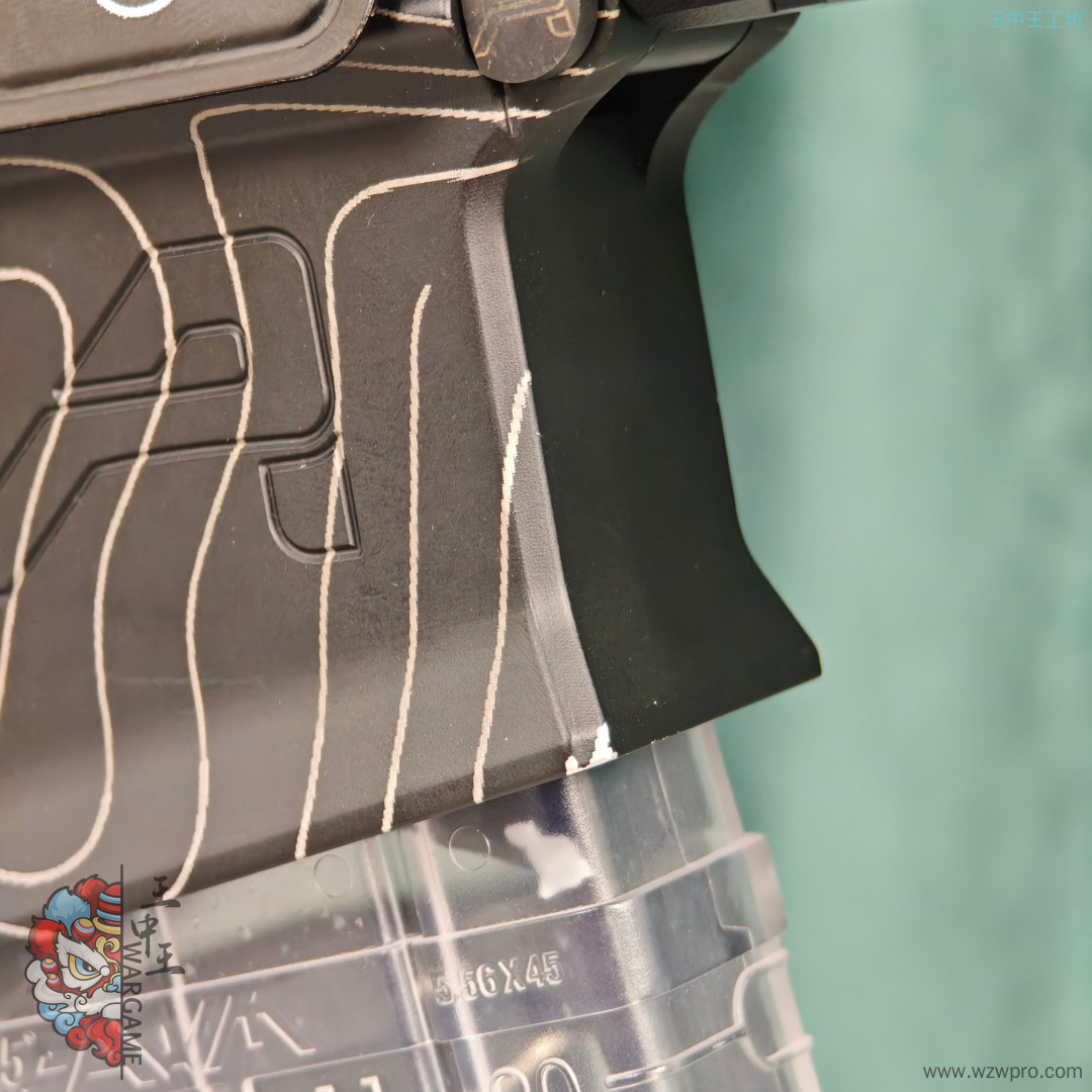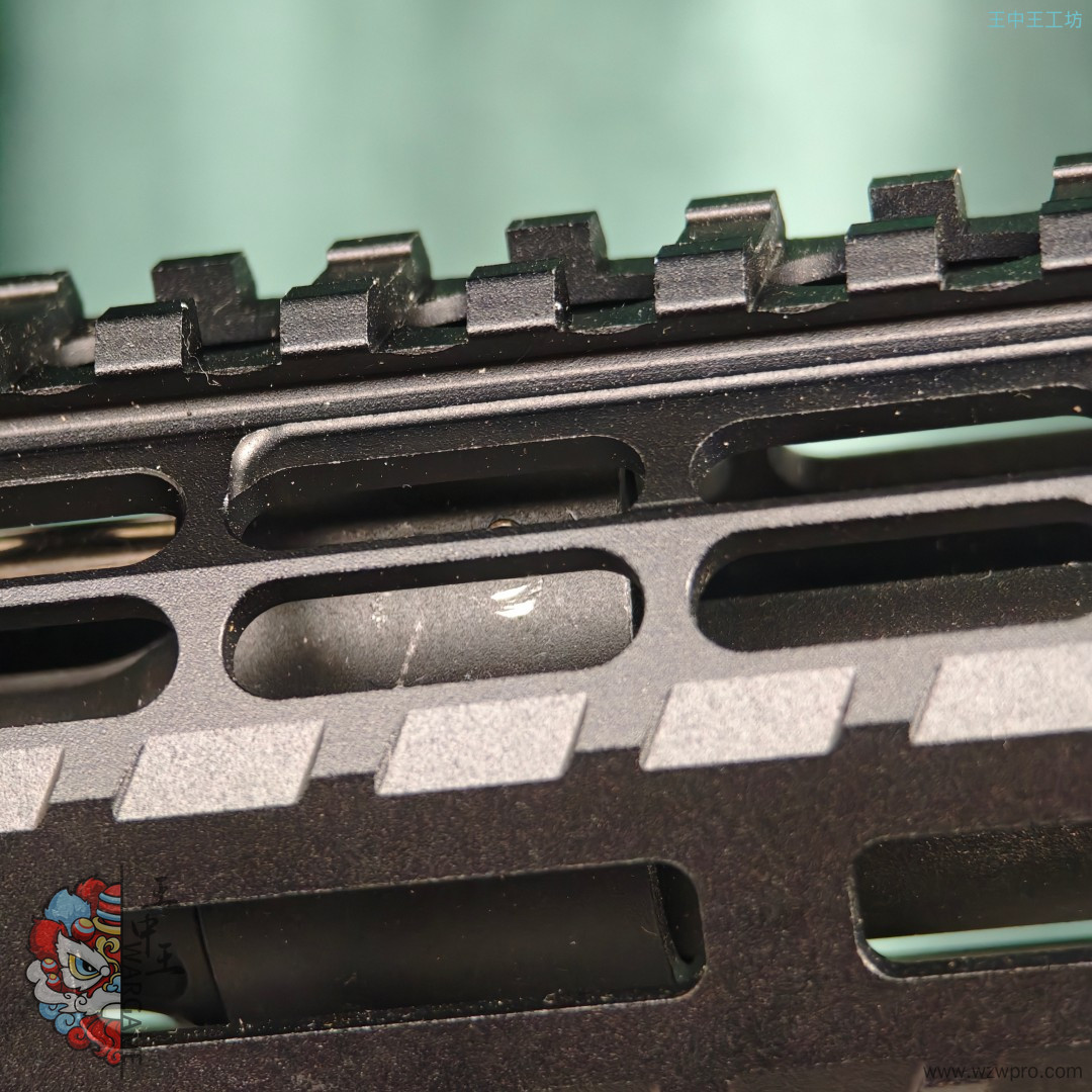 整体无大瑕疵只有弹匣井处托心处有点磕碰,不明显看是看不出来的,拉机柄波箱,回膛机片都是OMG原厂,数据也非常好,具体请先下图中的瑕疵位置。