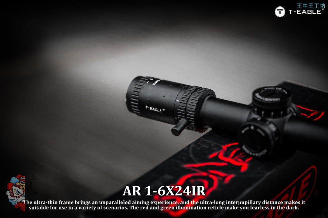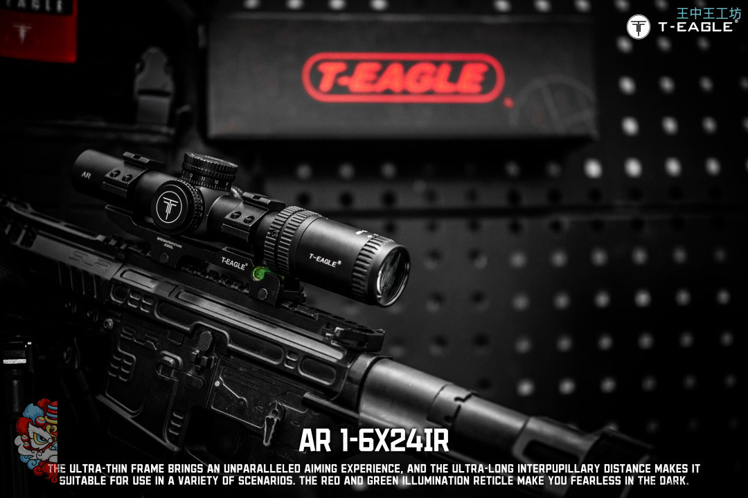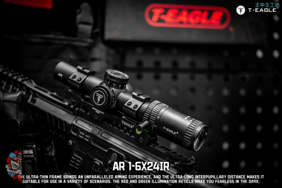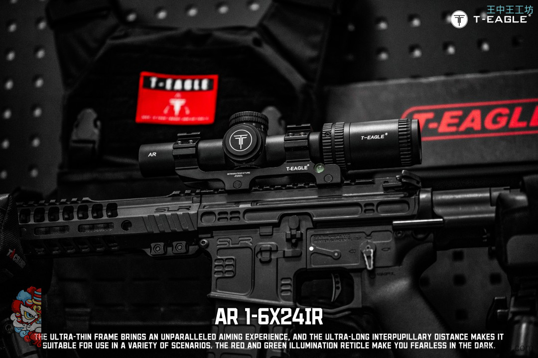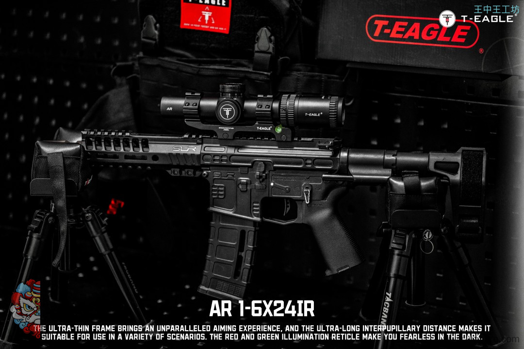 本季度 爆款高端速瞄~ 真1倍*超大出瞳距,T-EAGLE/突鹰AR1-6X24IR 玻璃板高端倍镜, 拉伸锁定式调节,1-6倍可调,超大视场角,价比首选
