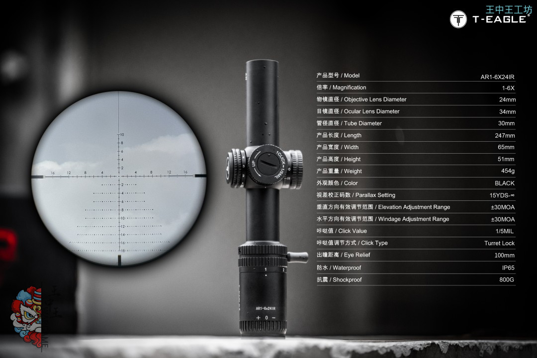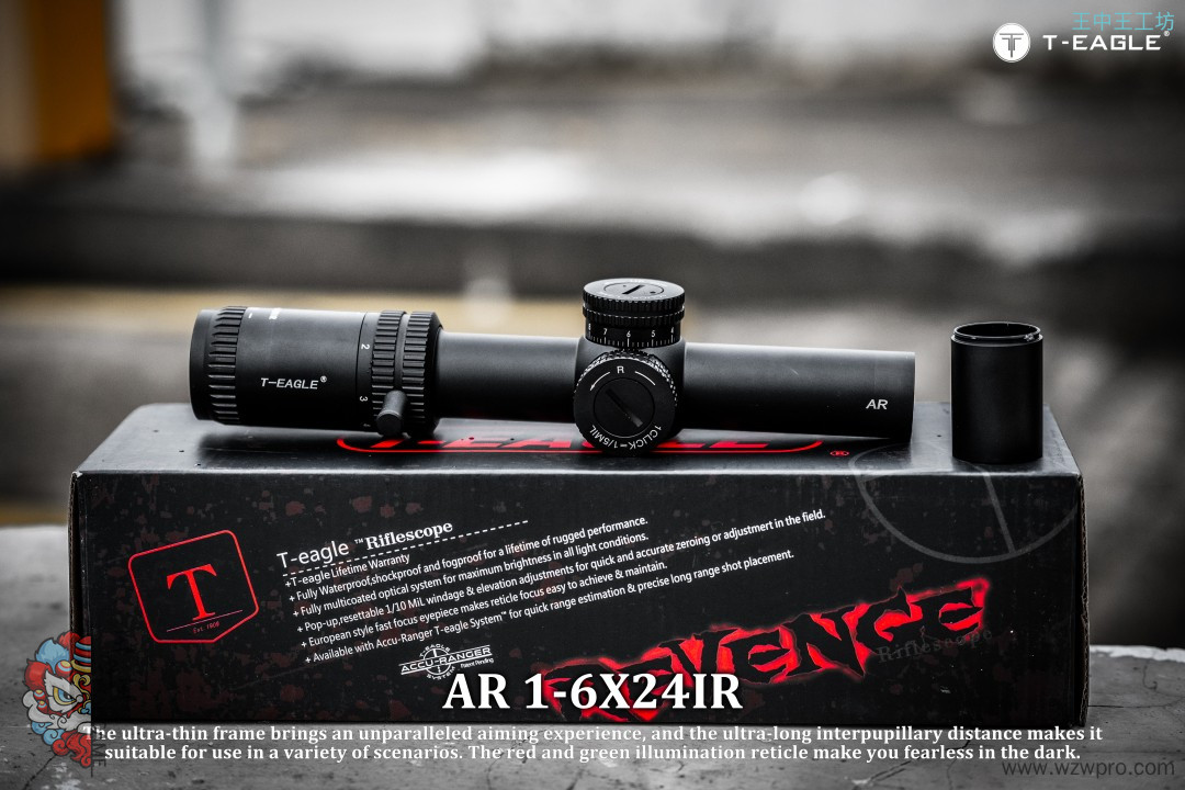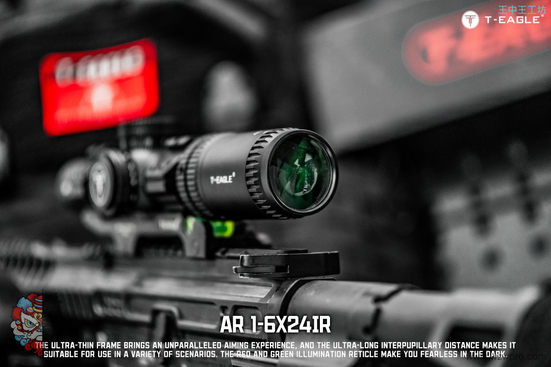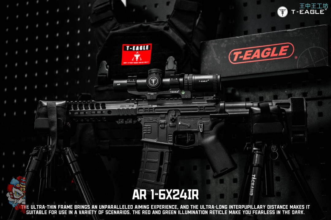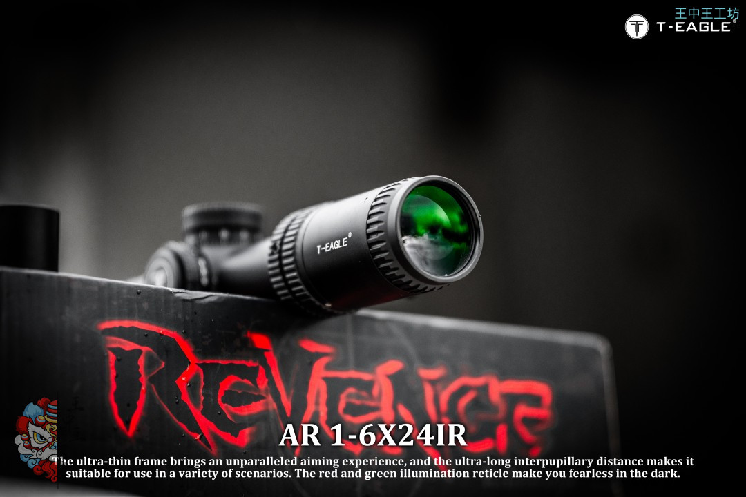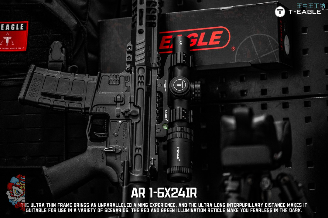 本季度 爆款高端速瞄~ 真1倍*超大出瞳距,T-EAGLE/突鹰AR1-6X24IR 玻璃板高端倍镜, 拉伸锁定式调节,1-6倍可调,超大视场角,价比首选