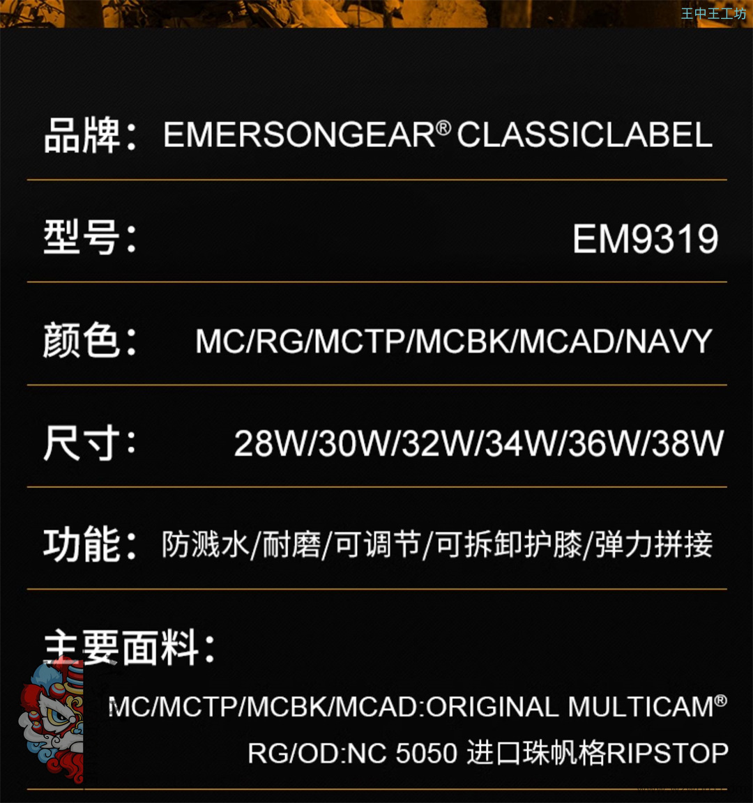 爱默生黄标MC原品面料G3战术裤男军迷裤户外作战裤耐磨防刮防泼水EMB9391