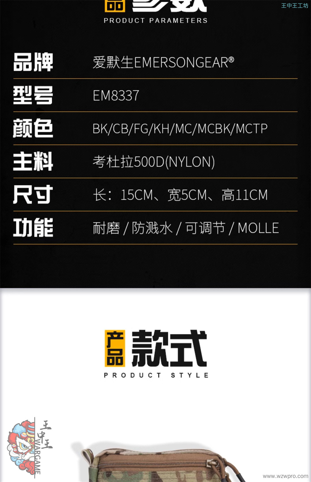爱默生EMERSON 外挂式器械包 molle 附件包15cm X 5cm X 11cmEM8337