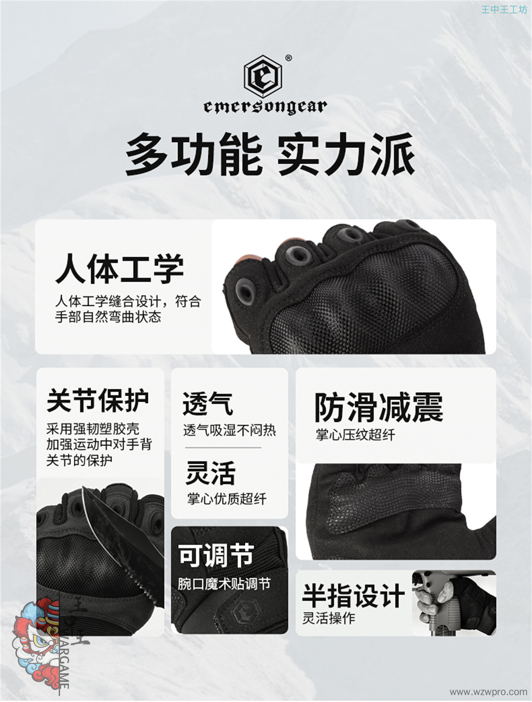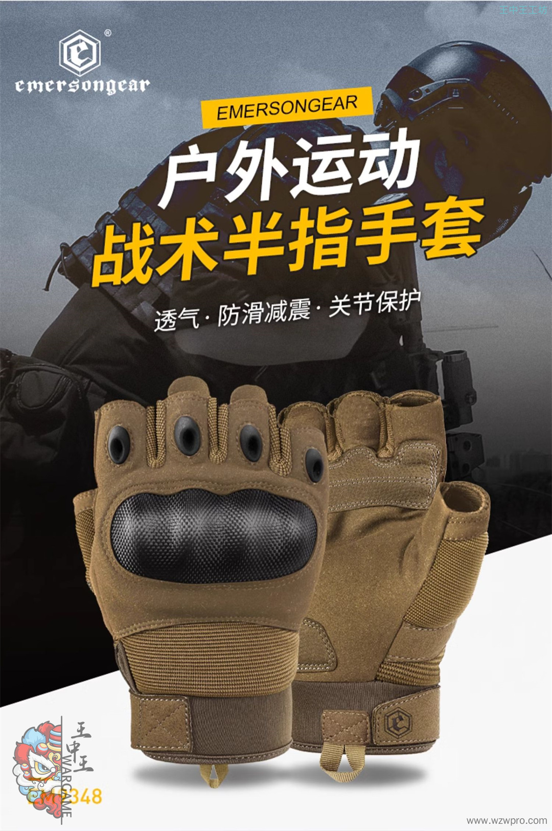 爱默生新品战术手套短指硬壳防护登山手套摩托车骑行触屏减震手套EM9348