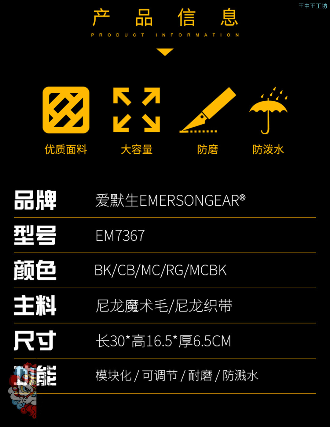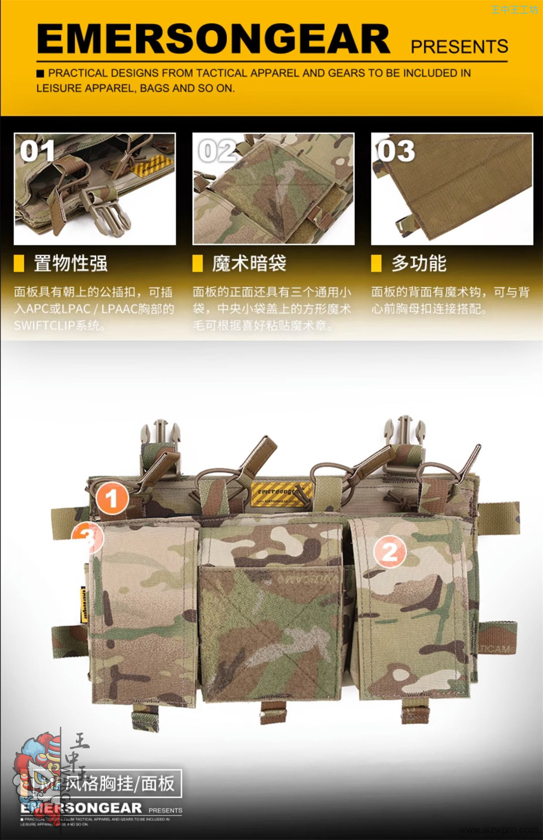 Emersongear 肚兜MF风格四联5.56胸挂战术背心面板1inch插扣EM7367