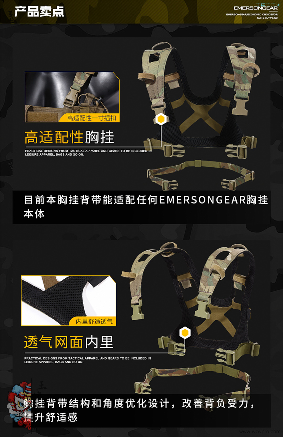 Emersongear爱默生CP风格AIRLITE战术胸挂背带多功能H型战术背带EM9632