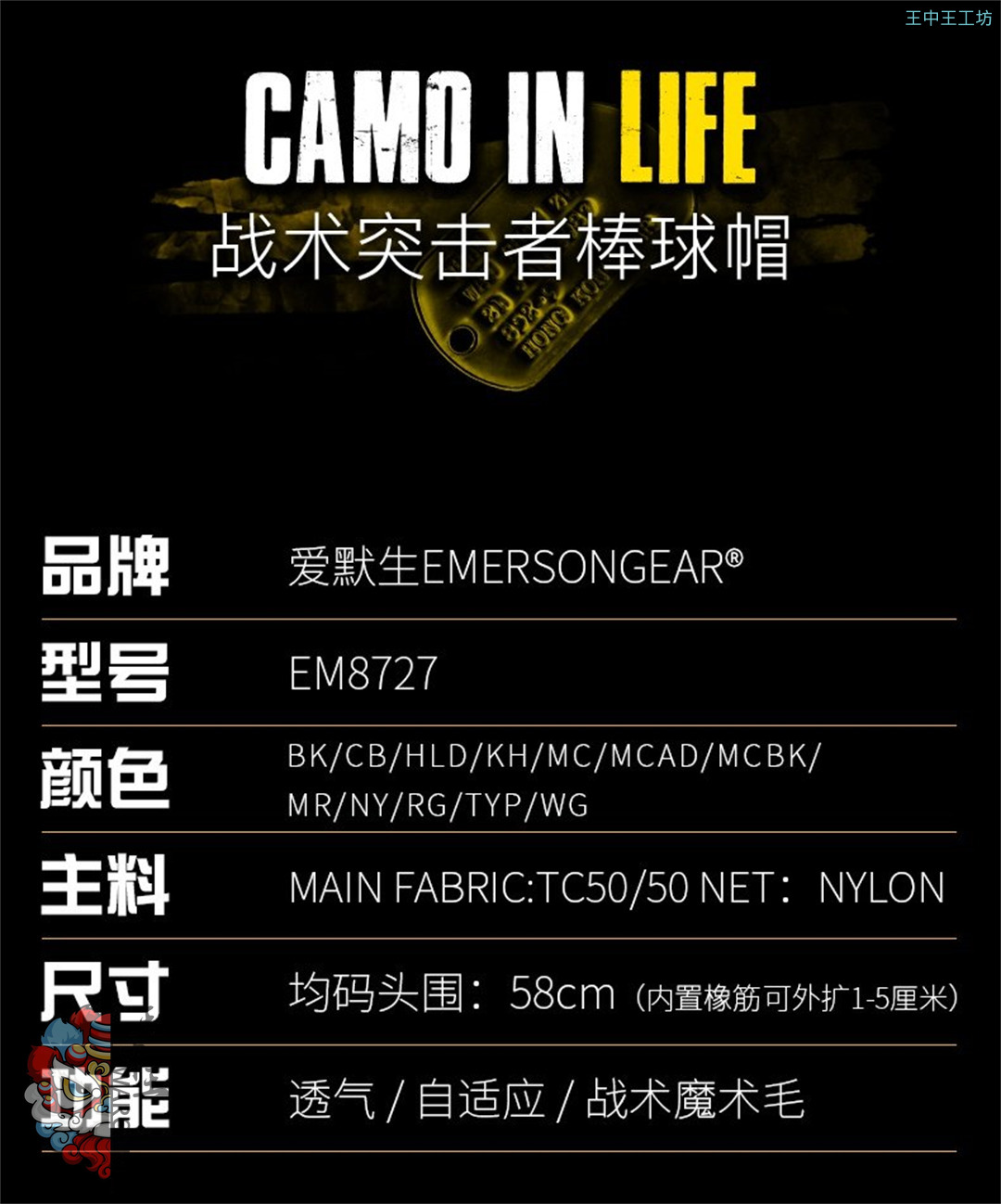 爱默生透气战术棒球帽夏季户外遮阳帽薄款钓鱼防晒太阳帽男鸭舌帽EM8727