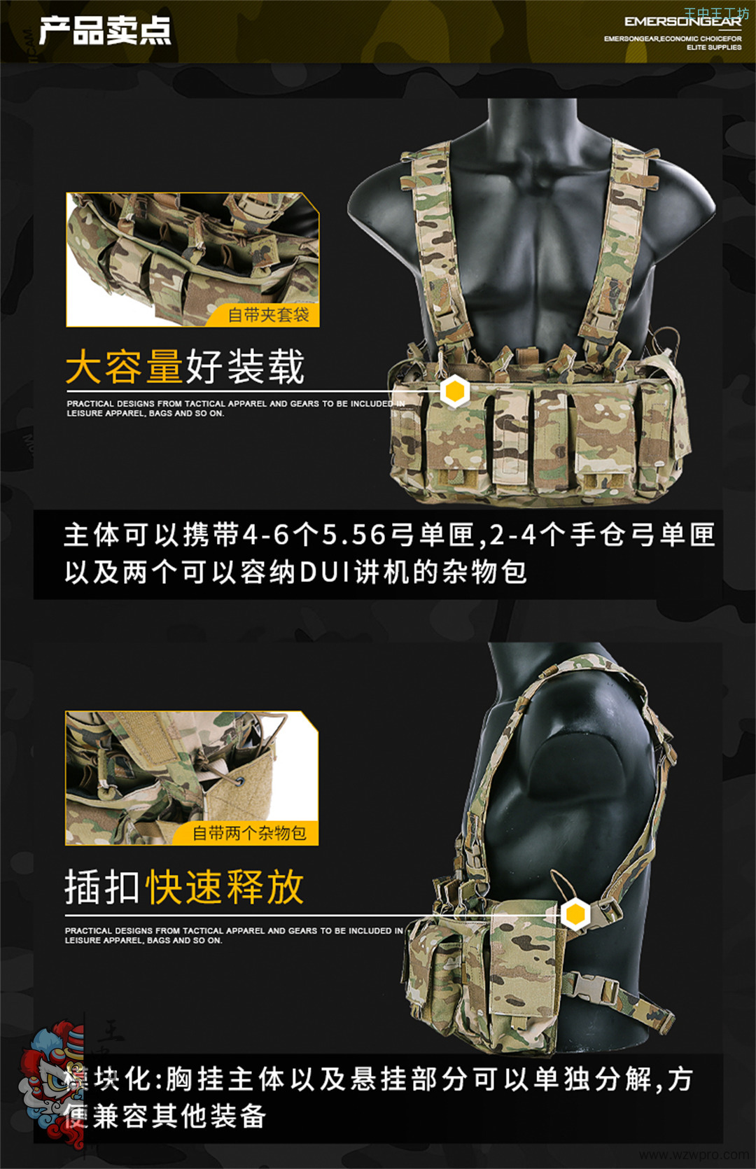 爱默生EmersonGear MF风格UW IV战术肚兜 5.56三联胸挂EM7329