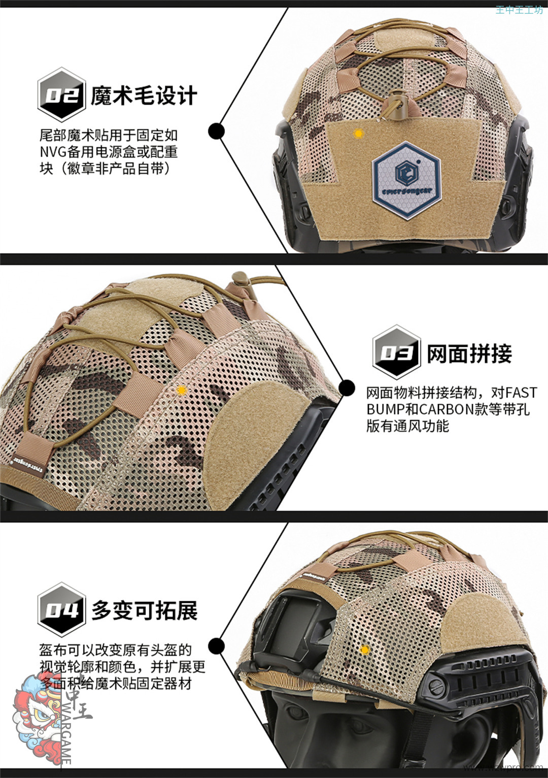爱默生战术FAST头盔布AG风格迷彩盔罩魔术贴盔布适配PJ BJ MH款EM9560