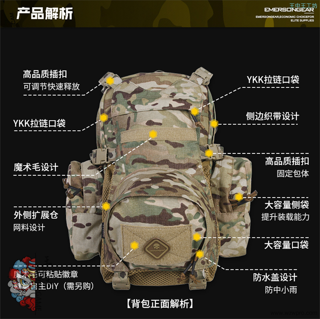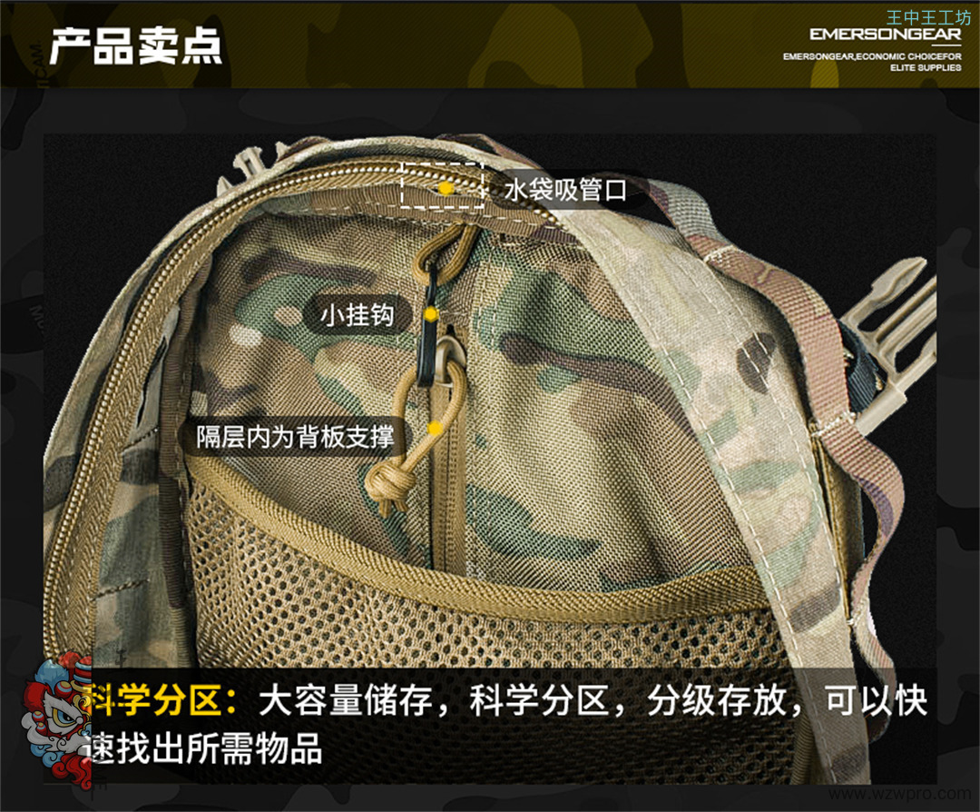 爱默生EMERSON 军迷户外装备 YOTE水袋突击背包molle战术附件包EM5813