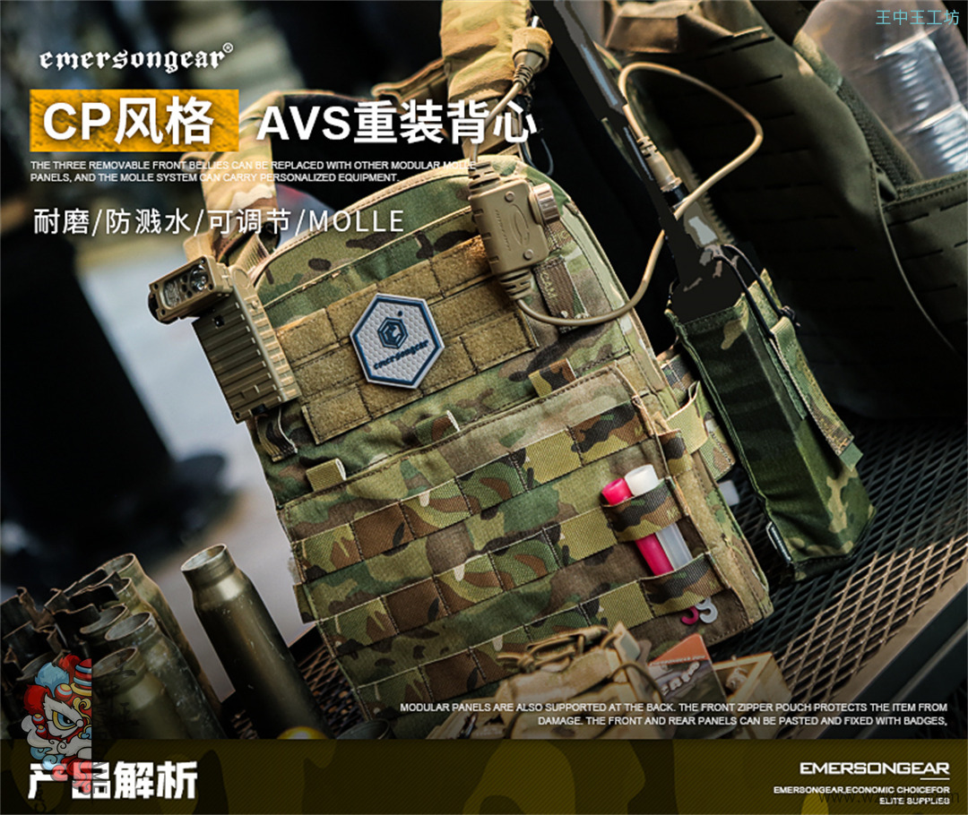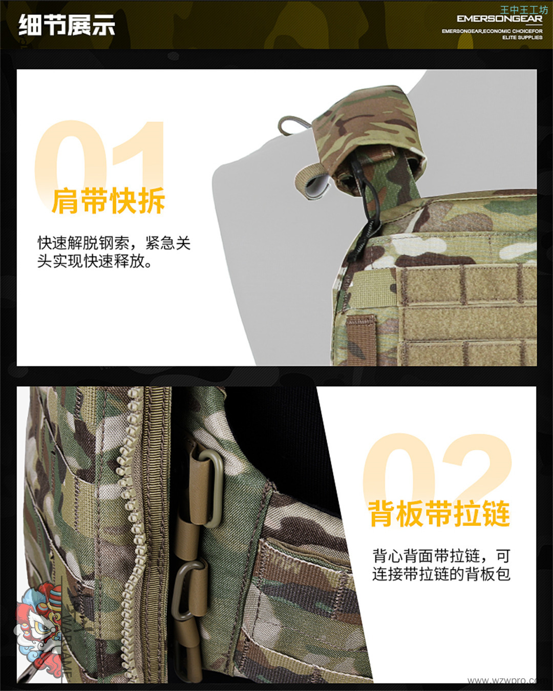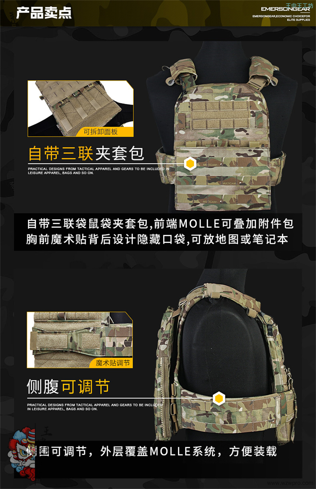爱默生EmersonGear战术快拆无插板 多功能CP风格AVS重装molle背心EM7397