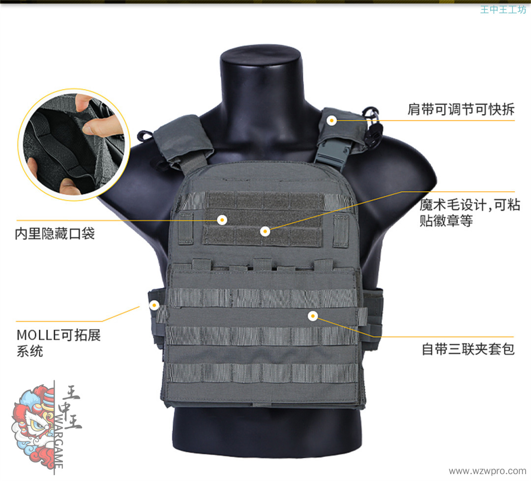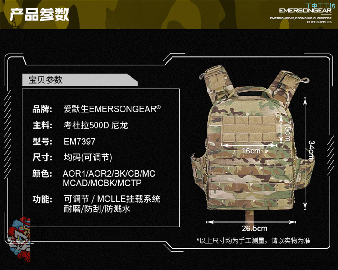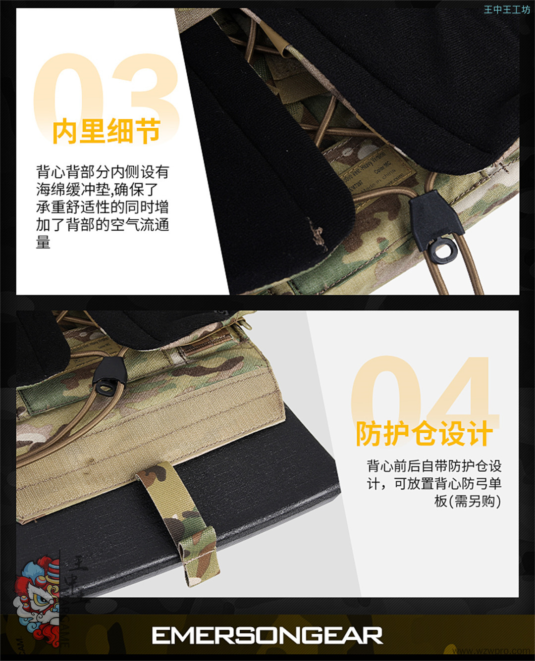 爱默生EmersonGear战术快拆无插板 多功能CP风格AVS重装molle背心EM7397