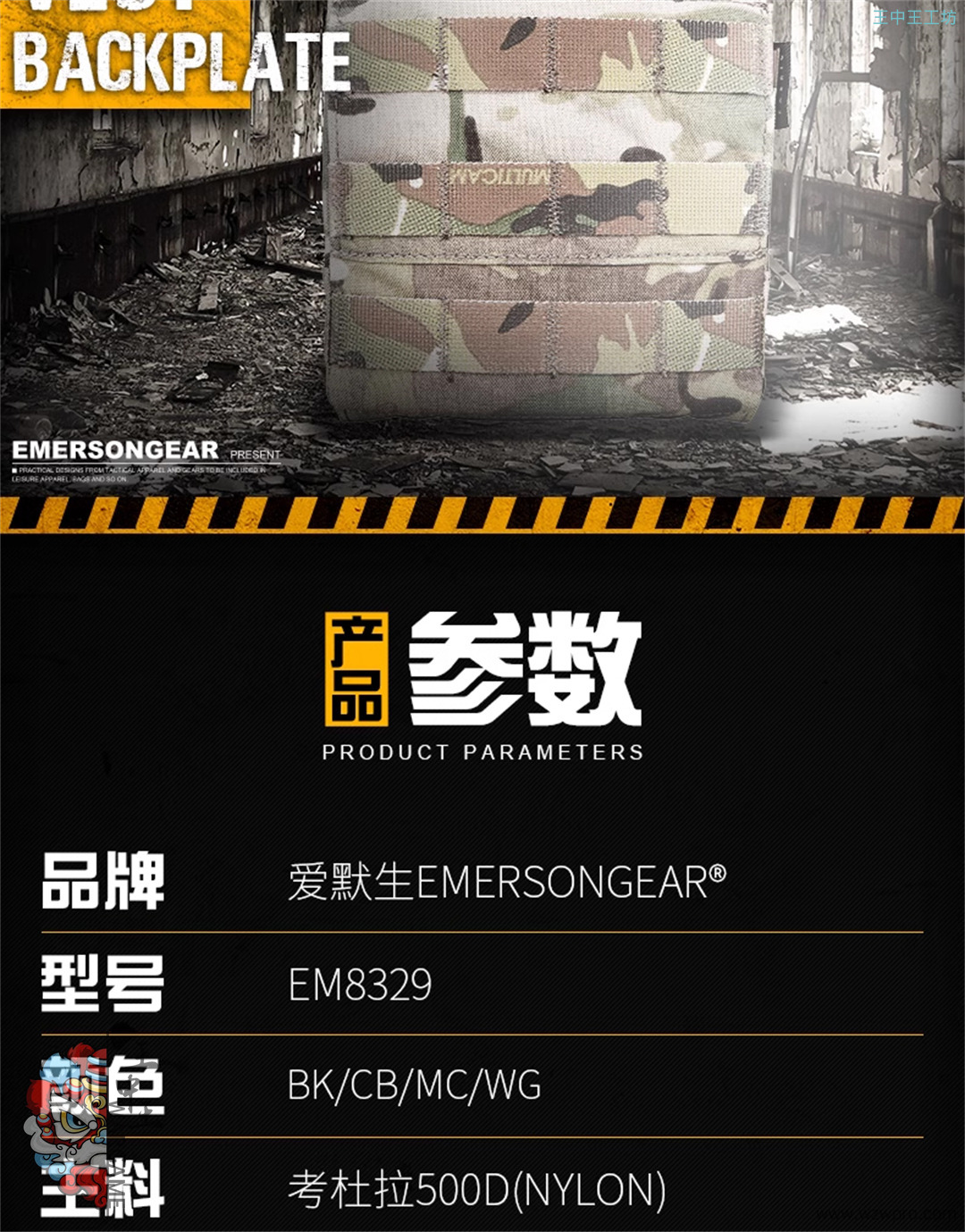 爱默生战术背心侧护板 6X6inch侧面防护板袋一对装带EVA板EM8329