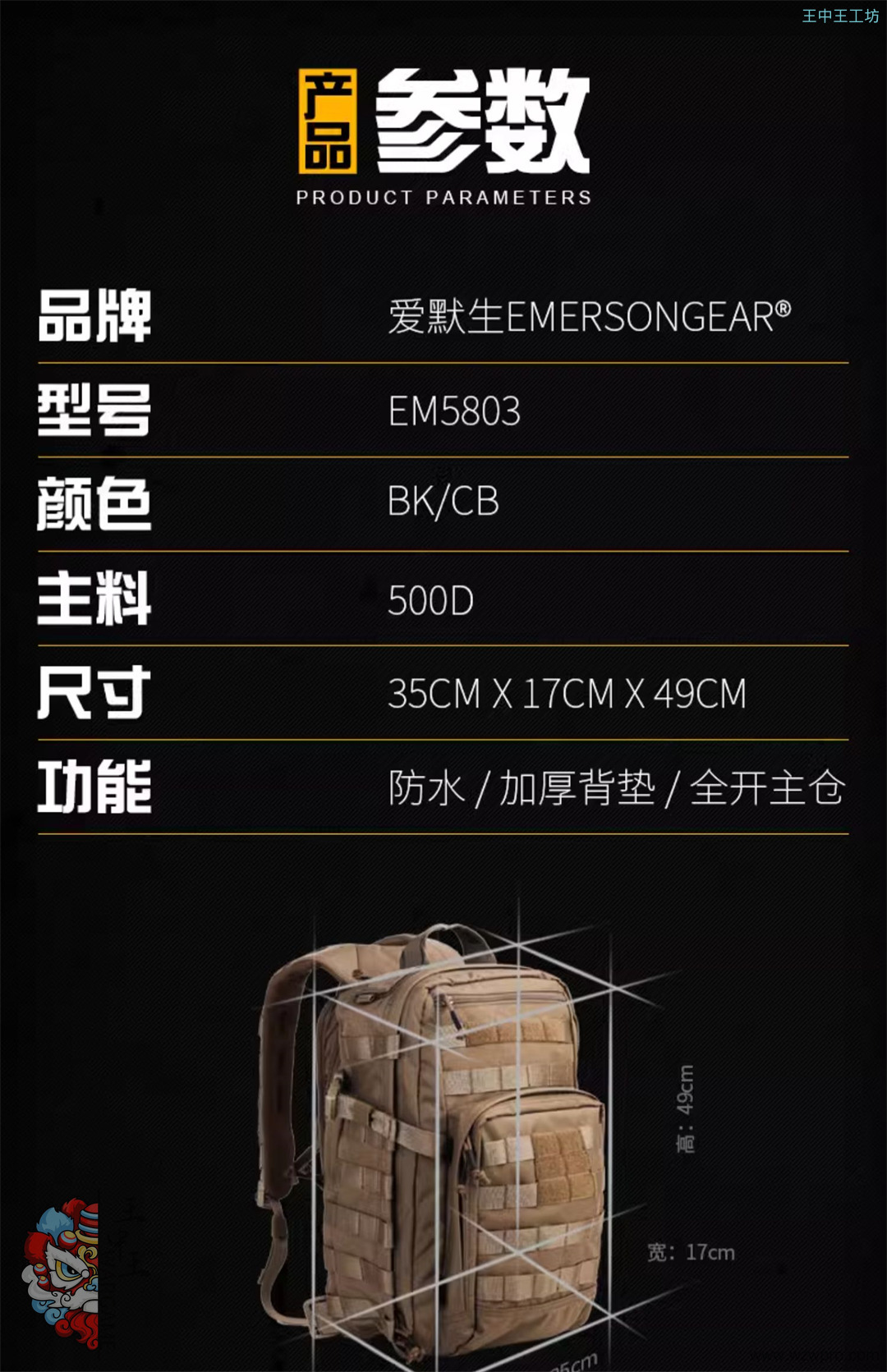 爱默生EmersonGear运动户外背包21升通勤小容量背包便携耐磨防水 EM5803