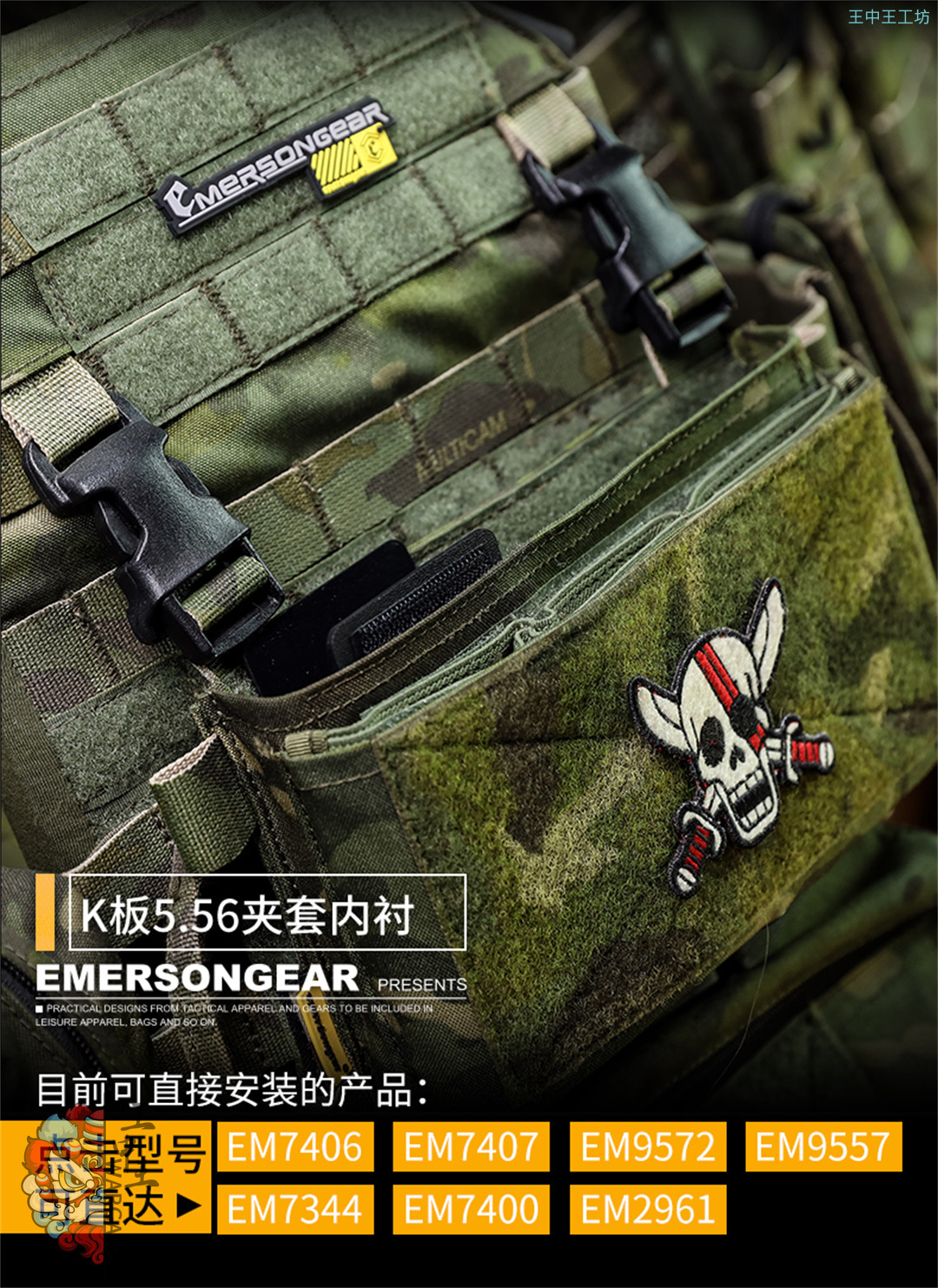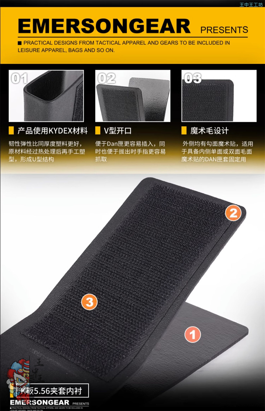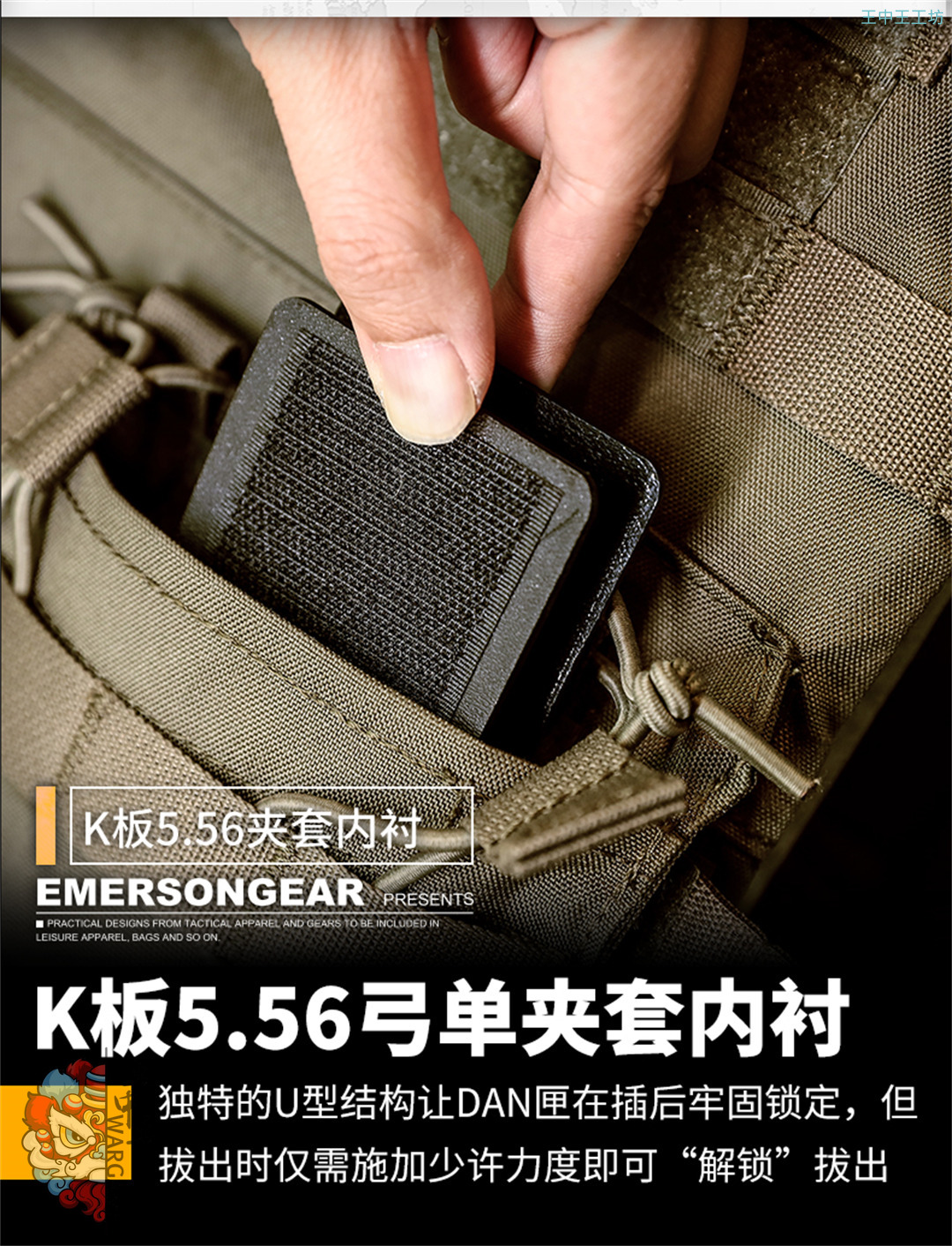 爱默生战术背心快拔夹套内衬硬质k板单夹固定内衬5.56夹套固定板 EM6382