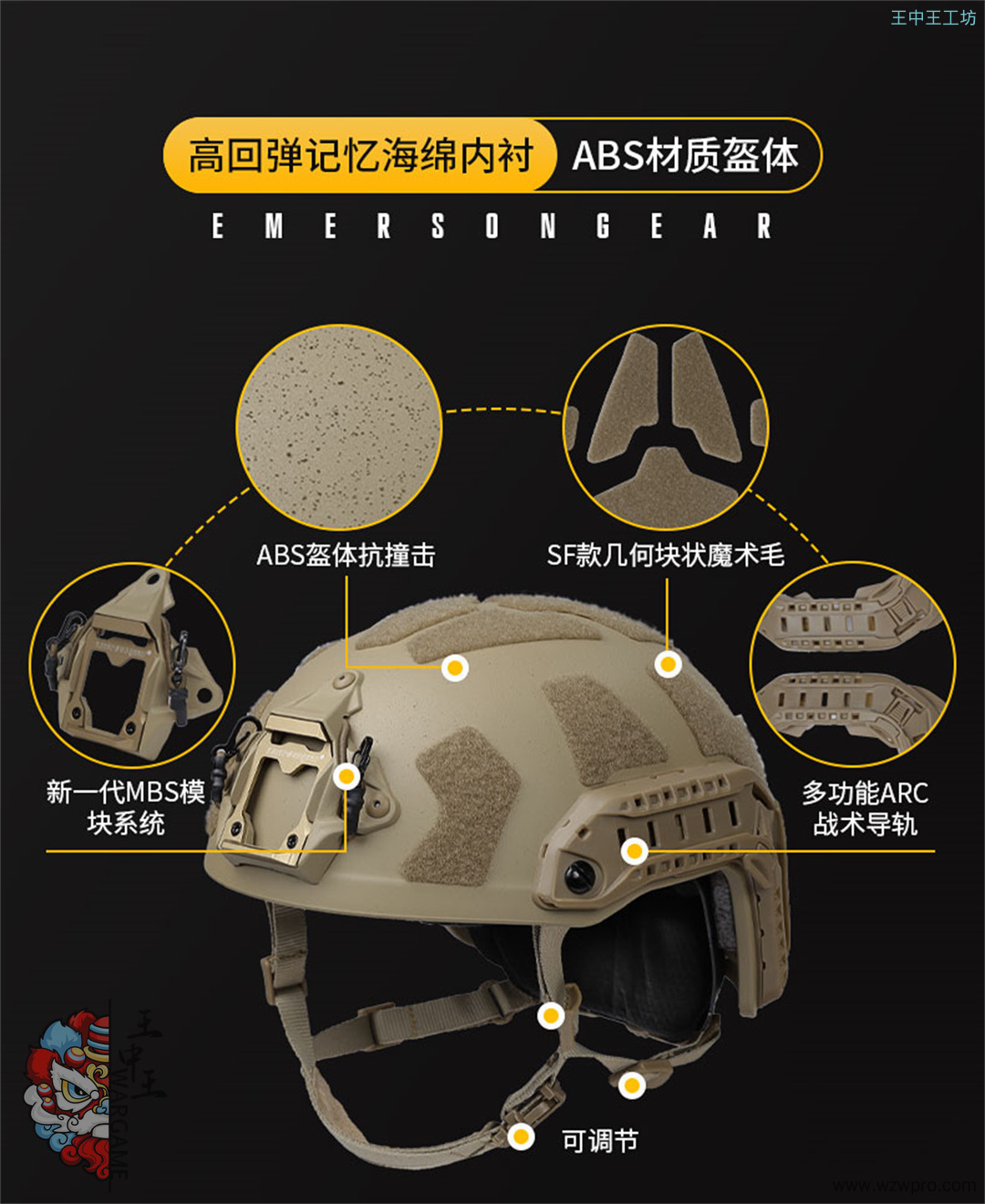 爱默生新品 SF超高切Fast战术头盔加厚款加大头围野战游戏头盔 EM9695