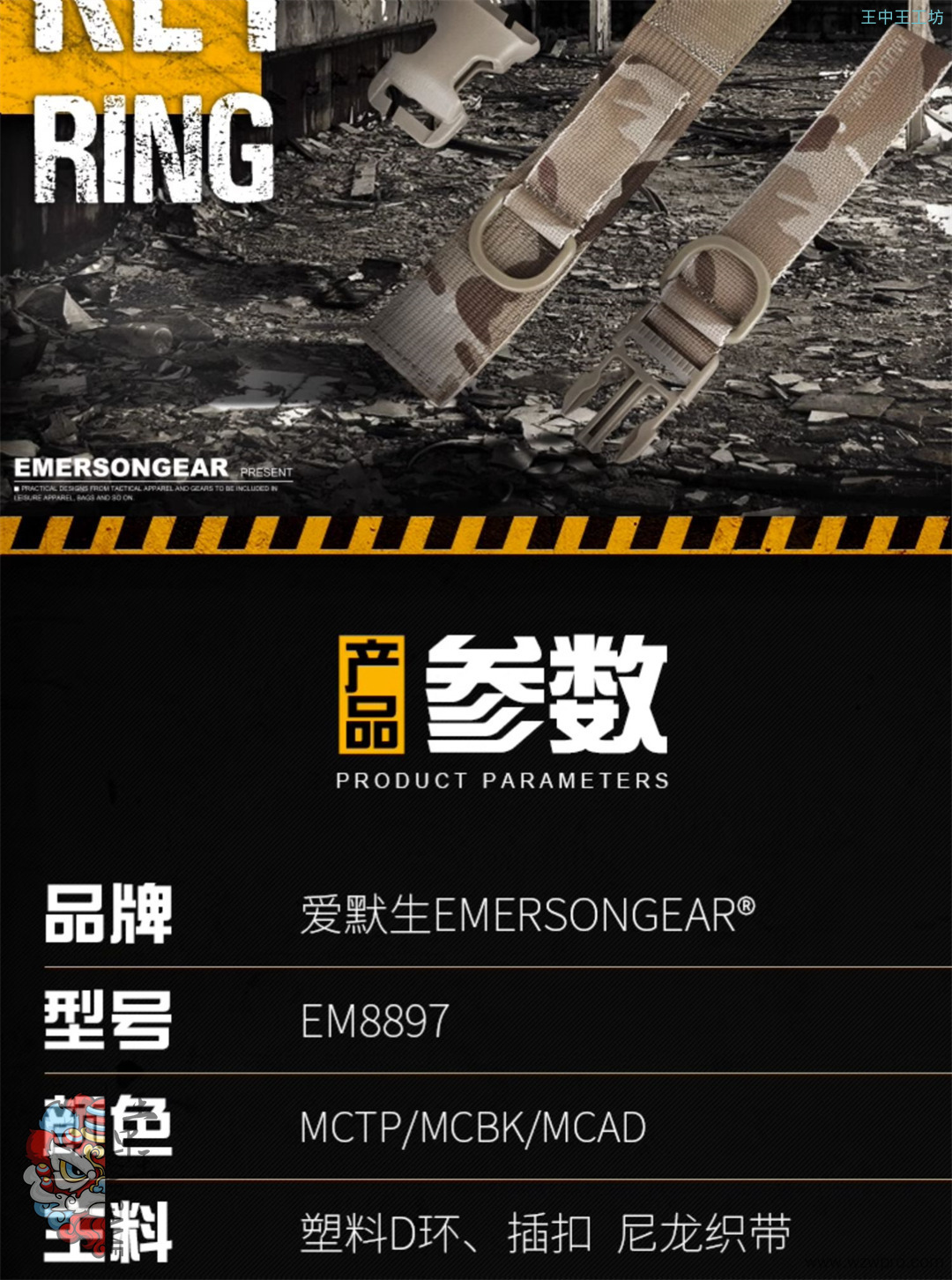 爱默生EmersonGear 战术腰带配饰腰挂钥匙扣钥匙扣懒人钥匙扣 EM8897