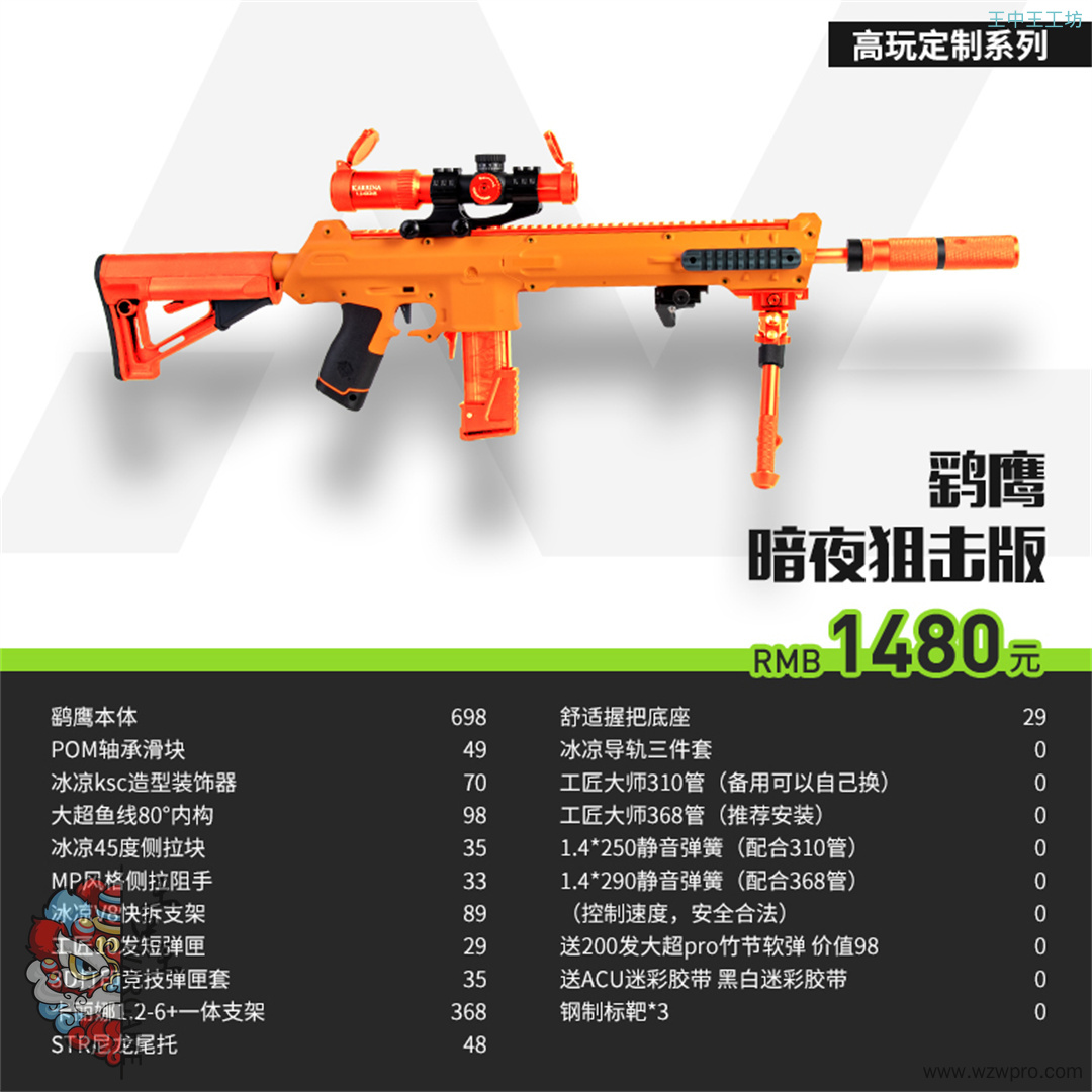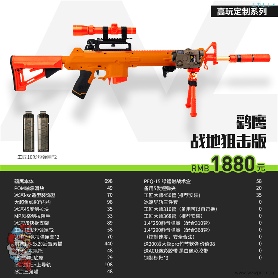 工匠大师worker海绵软弹枪玩具 鹞鹰发射器手拉短弹狙击造型