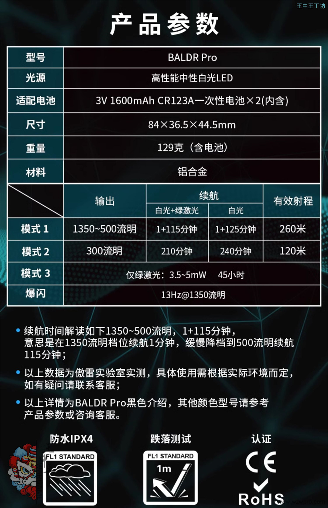 OLIGHT傲雷Baldr Pro强光战术灯P1镭射超亮手电绿激光户外电筒