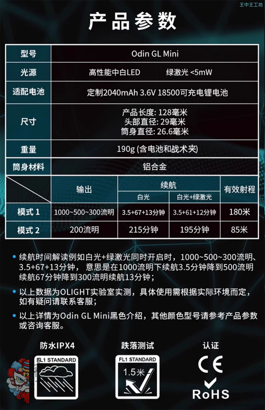 OLIGHT傲雷奥丁Odin GL Mini绿激光小巧稳固战术灯轻型强光手电