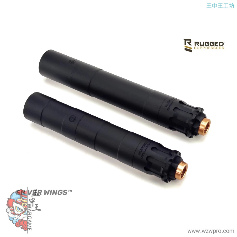 这两款 RUGGED Obsidian 的消音,可玩性非常高。应该是目前市面上极少的手枪专用消音器,14逆牙接口更可以搭载AR系列发射器,装配各种冲锋枪(MP5 MPX EVO UMP45)效果也非常不错。长短自由切换,购买两款合体拼接还可以解锁12寸/30cm的超长形态 …