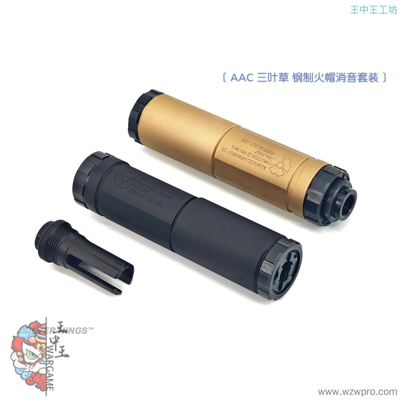 AAC 三叶艹 钢制金属14逆牙火冒消音套装 前管装饰器 银翼军模