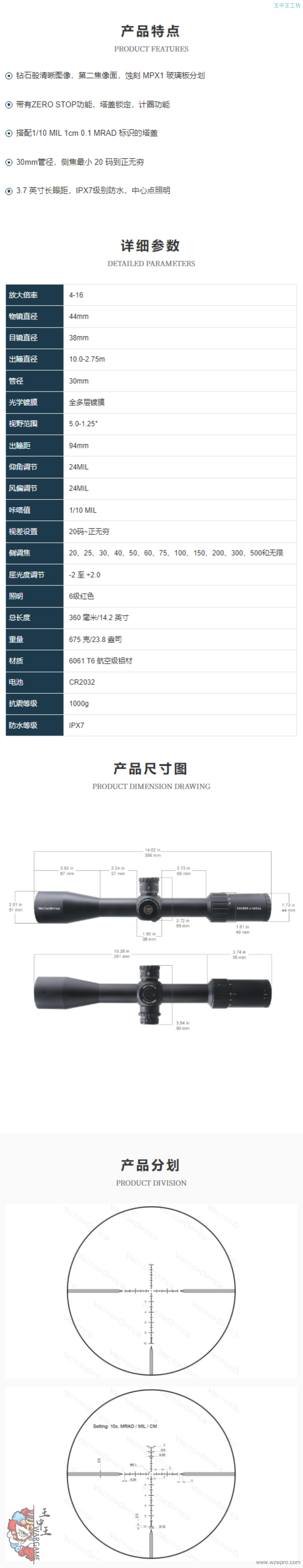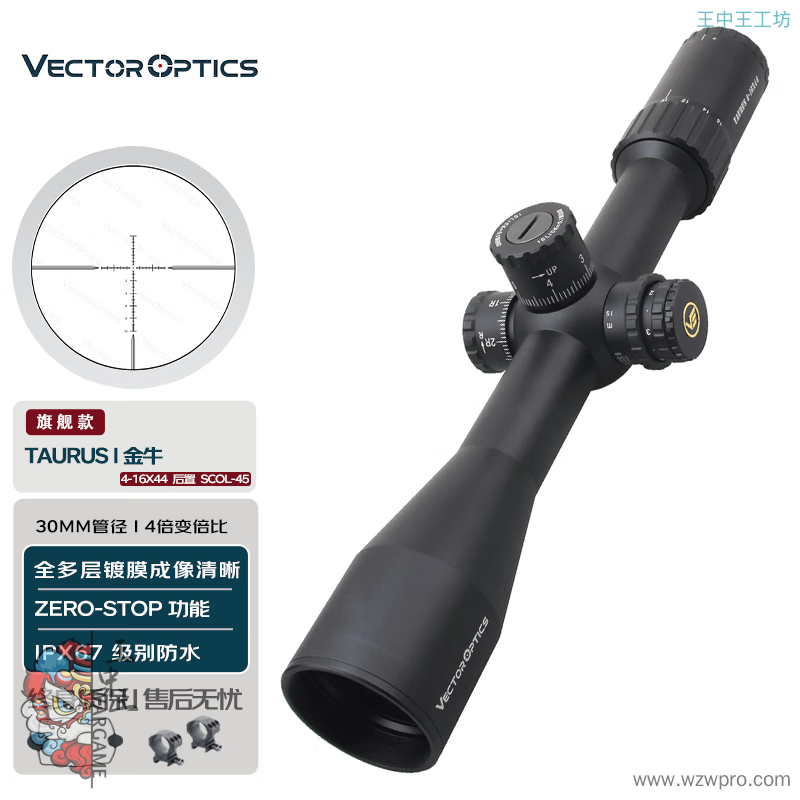维特光学(VECTOROPTICS) 金牛4-16x44HD瞄准镜后置止退锁高倍高清高抗震瞄准器